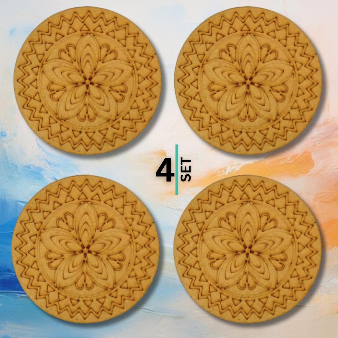 Contents: Set of 4 premarked coasters, size 9×9 cm (3.5 inch x 3.5 inch) approx, Thickness – 3mm