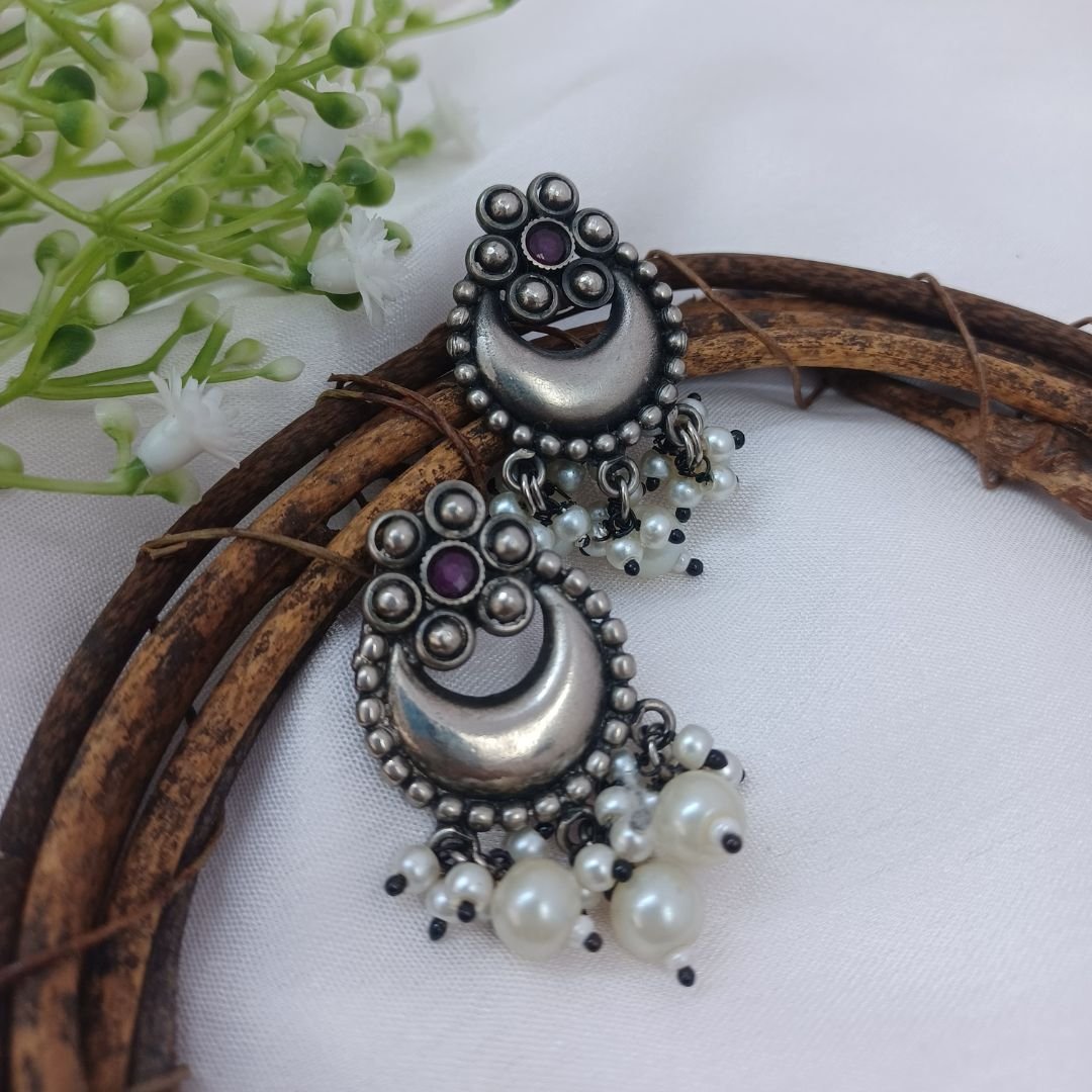 The oxidised silver finish gives these chandbalis an antique look. This not only adds to their charm but also enhances their durability. Additionally, the oxidised finish makes them easy to pair with various outfits. Furthermore, it lends a unique character to these already stunning earrings.